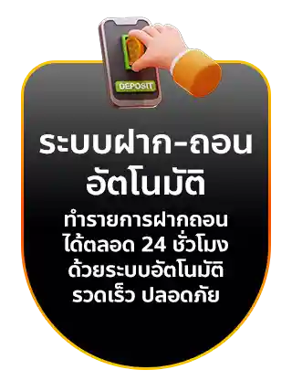 ตอบ : ใช้ระบบฝาก-ถอนอัตโนมัติ รวดเร็วภายใน 30 วินาที รองรับทุกธนาคาร ทำรายการได้ตลอด 24 ชั่วโมง
