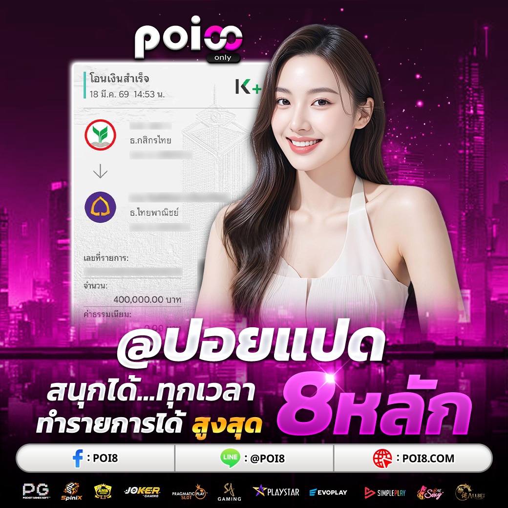 ระบบการฝาก-ถอนของ poi8 ก็เป็นอีกจุดเด่นที่น่าสนใจ ด้วยระบบอัตโนมัติที่รวดเร็ว ปลอดภัย ทำรายการได้ตลอด 24 ชั่วโมง ไม่มีขั้นต่ำ รองรับทุกธนาคารชั้นนำ และยังมีช่องทางการชำระเงินที่หลากหลาย รวมถึงการใช้ E-Wallet ที่กำลังได้รับความนิยมในปัจจุบัน