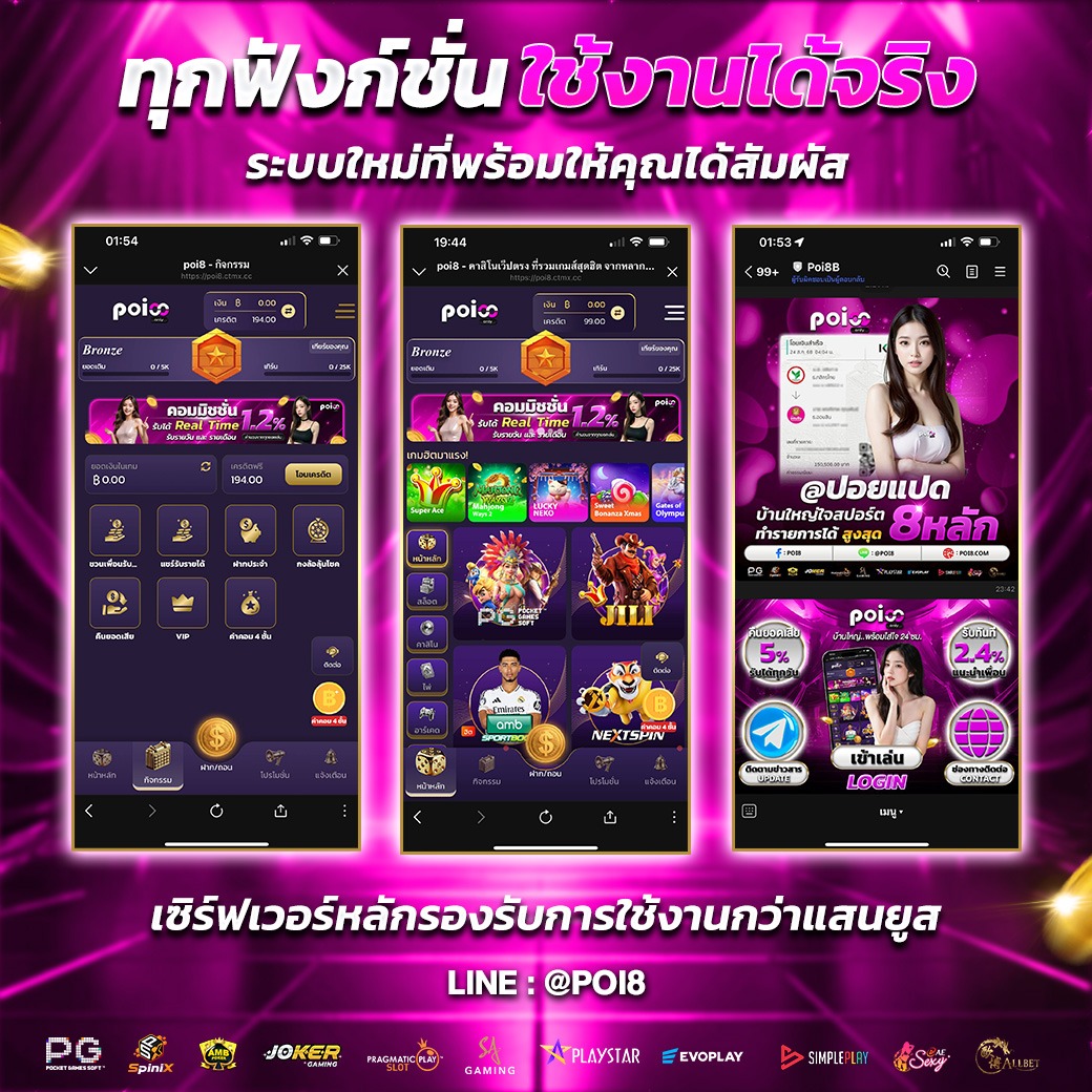 ทุกเกมใน POI8 รองรับการเล่นผ่านมือถือได้อย่างลื่นไหล ไม่ว่าจะใช้ iOS หรือ Android เพียงเข้าเว็บไซต์ผ่านบราวเซอร์ก็สามารถเพลิดเพลินได้ทุกที่ทุกเวลา ระบบฝาก-ถอนอัตโนมัติทำรายการได้ภายในไม่กี่วินาที และมีโปรโมชั่นพิเศษมากมายให้เลือกรับ ทั้งโบนัสต้อนรับสมาชิกใหม่ เครดิตฟรี และคืนยอดเสียรายสัปดาห์ ทีมงานพร้อมให้บริการและช่วยเหลือตลอด 24 ชั่วโมงผ่านช่องทางไลน์แอด ทำให้การเล่นเกมออนไลน์บน POI8 สะดวกสบายและปลอดภัย